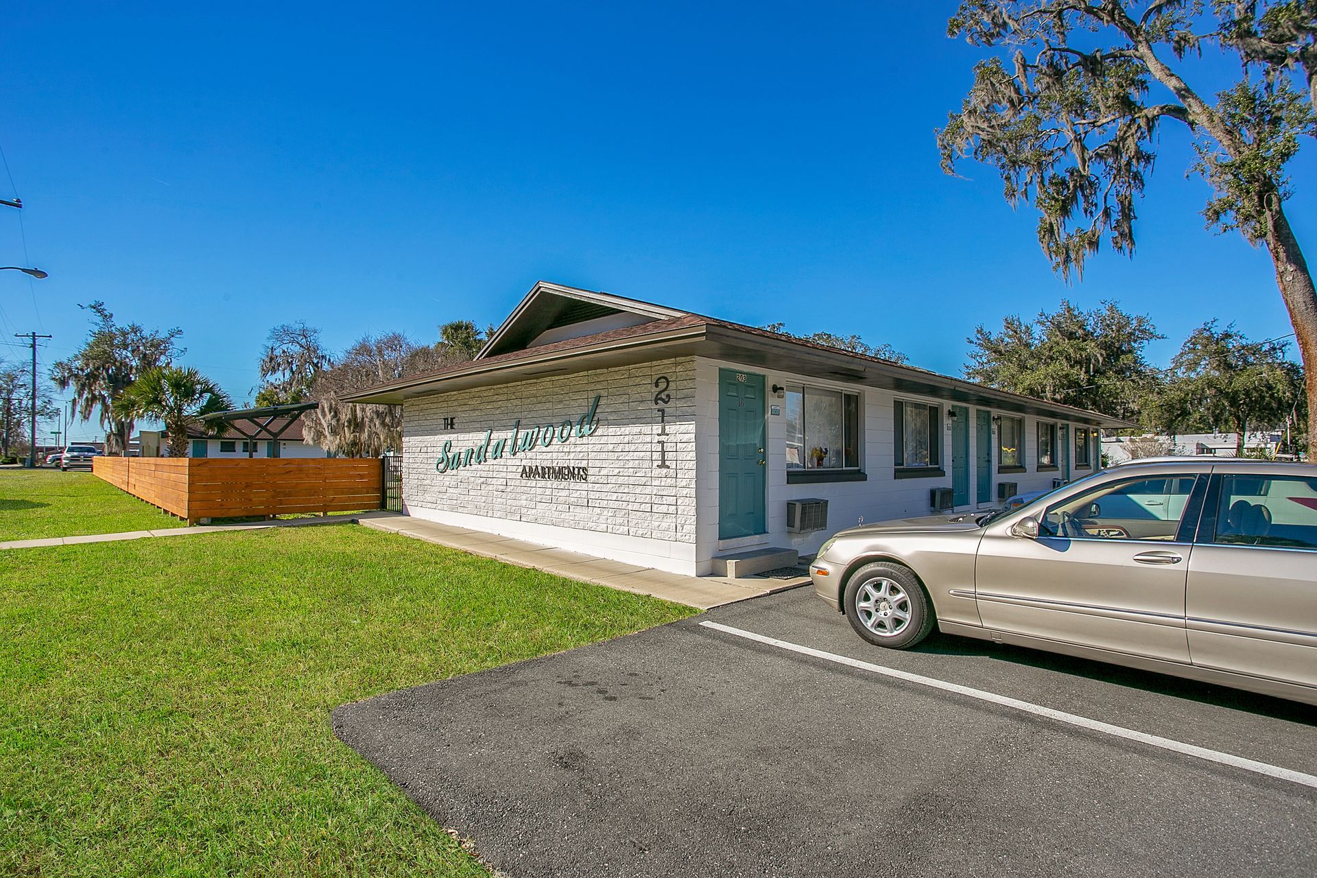 Sandalwood: brand-new energy-efficient mini-split HVAC in every studio. From $999/mo. Modern plank flooring, upgraded appliances, in-home laundry, smart-home tech, walk-in closet. Outdoor kitchen, private courtyard, mature trees, custom bike rack. $75/mo covers water, trash, pest control. Near Historic Downtown Ocala. Pet-friendly, multiple pets.